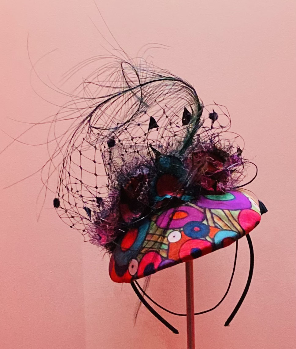 Das Titelbild zeigt mich mit meinem Lieblingsfascinator. Zu solch aufwändig gearbeiteten Headpieces fertige ich auch passende Accessoires, Täschchen, Etuis, Seidenschals und Jacken. Im bayerischen Raum präsentiere ich seit über 30 Jahren meine Arbeiten . Ich arbeite gerne auf Auftrag und empfange und berate meine Textilliebhaberinnen auch persönlich in meinen Räumen. Mein nahezu unerschöpflicher Fundus an Rohmaterialien, Filzen, Stoffen, Federn und Vintage-Zutaten führt zu stets neuen Kreationen.